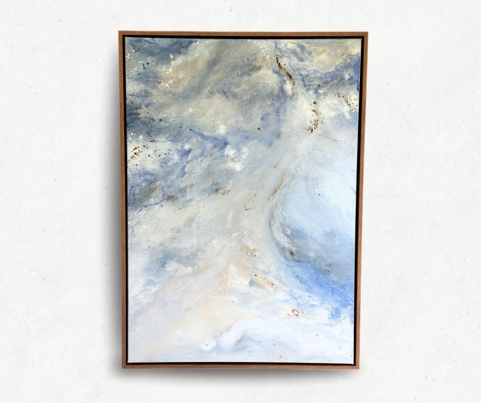 Ink, acrylic, potassium permanganate, pastel and wine on canvas 59.5 x 81cm x 4.5cm (framed)